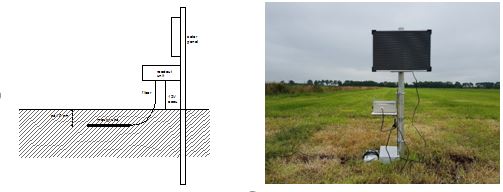 Het meetsysteem bestaat uit een fiber-optische sensorprobe, die in de wortelzone wordt geplaatst en een meetunit die boven de grond staat (zie Figuur 1). Het sensorsysteem meet de nitraatconcentratie opgelost in bodemvocht door middel van lichtreflectie. Het kan over een langere periode met een hoge meetfrequentie data genereren. Voor een praktische interpretatie moet de gemeten concentratie vertaald worden naar een beschikbare hoeveelheid stikstof in kg per ha. De nitraathoeveelheid is nagenoeg gelijk aan de minerale stikstof in de bodem (N-min) aangezien de hoeveelheid ammonia over het algemeen laag is.