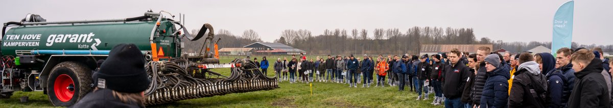 Tijdens de demo op Aeres Farms in Dronten lieten Vogelsang, N2 Applied en Slootsmid Mesttechniek zien met welke innovatie zij inzetten op ammoniakreductie tijdens bemesting. De drie ondernemers nemen deel aan Bemest op z’n Best, dat als doel heeft om ammoniakemissie tijdens bemesting met minimaal de helft te reduceren ten opzichte van de huidige technieken. Idee-indieners maken in dit programma gebruik van de onderzoekcapaciteit en kennis van een breed team van experts. In demo’s delen deze experts zowel onderzoeks- als praktische kennis en worden innovaties van deelnemende partijen getoond. Dat dit de aandacht trekt van zowel boeren en loonwerkers uit de praktijk als van agrarische opleidingen blijkt uit de grote belangstelling voor de demo in Dronten.