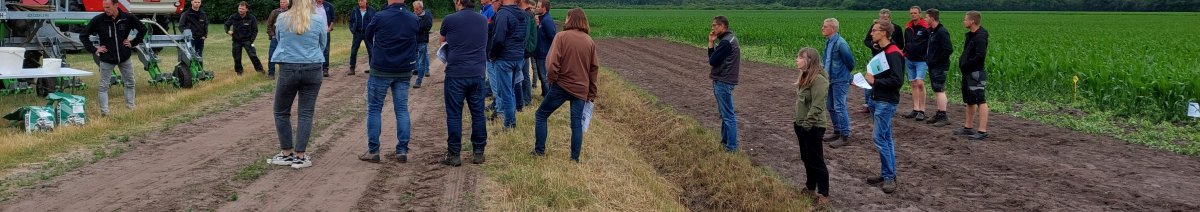 Marcel Betten van Loonbedrijf De Samenwerking BV neemt de proef op de som: Zorgt optimale emissiearme mesttoediening inderdaad voor een hogere maisopbrengst door betere stikstofbenutting? Wat zijn de resultaatsverschillen tussen bemestingsmethoden? En wat is het effect van gedeelde bijbemesting en scherper of juist ruimer bemesten dan het bemestingsadvies op de gewasopbrengst en de bodemgesteldheid? Zo’n negentig geïnteresseerde boeren, loonwerkers, machinebouwers en agrarisch adviseurs bekeken dinsdag 4 juli de tussentijdse resultaten en deden relevante kennis op.