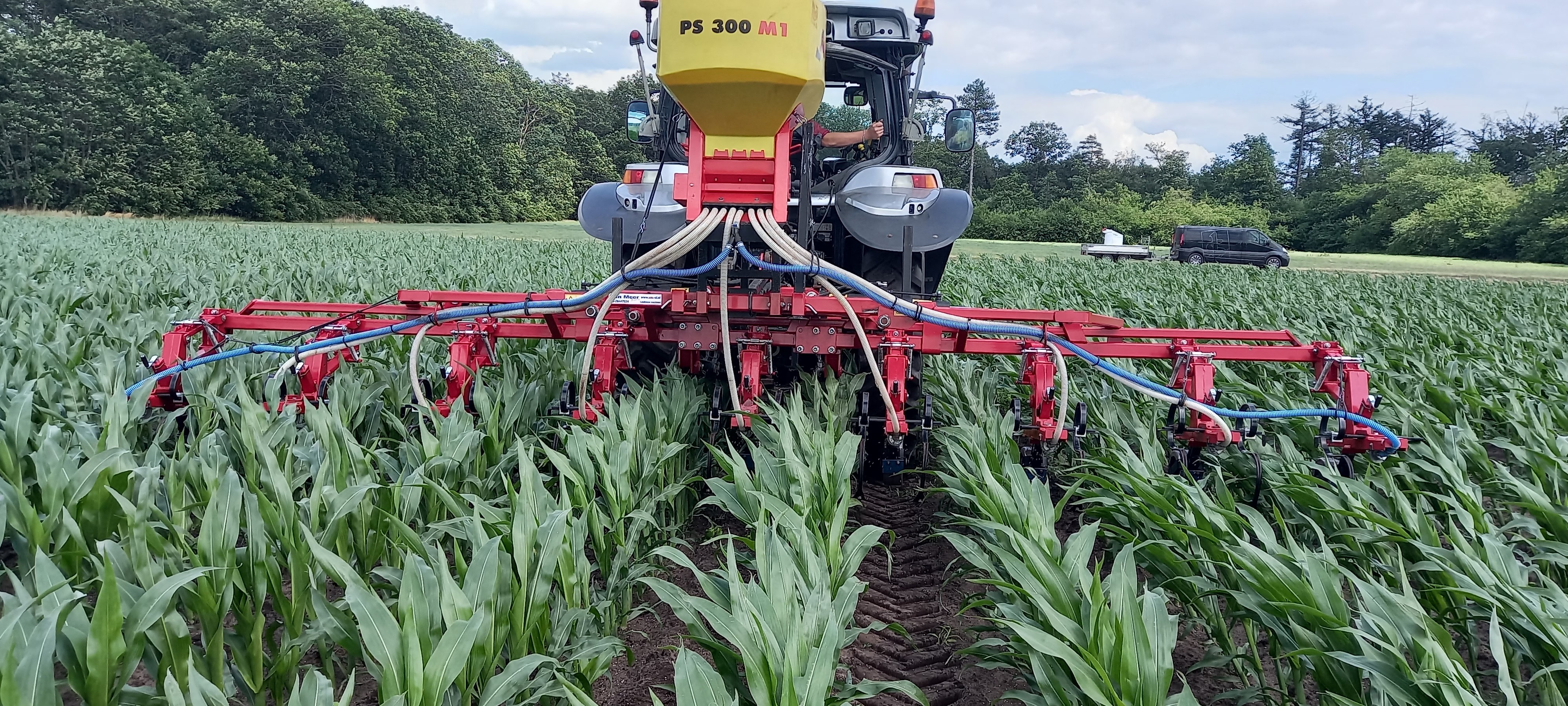 Marcel Betten toonde tijdens de demo een bijbemestingstechniek en onderzaai met een schoffelzaaimachine en wiedeg en hield een verhaal over de verschillen in onderzaai. Een goede uitvoering van bemesting blijkt in de praktijk nog knap lastig. Het vraagt de nodige kennis en vaardigheden van de loonwerker én de juiste apparatuur. Wat opviel in het veld was dat de basisbemesting met strokeninjecteur als een soort sponsje werkt: in de bodem ontstaat een organische stofreservaat dat vocht vasthoudt, waar de mais gedurende langere periode vocht uit haalt. Een goede techniek voor droge zandgronden zoals in Elsloo dus.