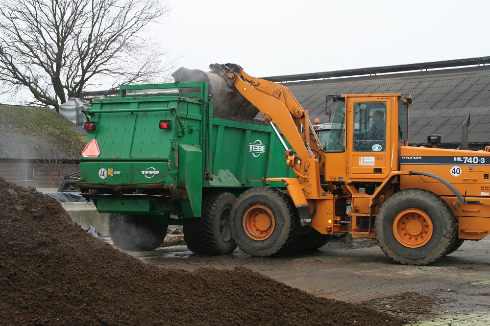 Een loonwerker kan bijvoorbeeld 1000 m3 mest voor u scheiden op het erf. Dunne fractie moet apart opgeslagen worden en voor de dikke fractie volstaat een dichte ondergrond, bij voorkeur met silowanden. De dikke fractie zal dan geen vocht verliezen en dekt u af met plastic om vernatting door regenval te voorkomen. De dikke fractie kan in één keer aan het eind van de winter uitgereden worden.