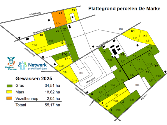 Op perceel 21 komt naar verwachting een bemestingsproef met vezelhennep te liggen.