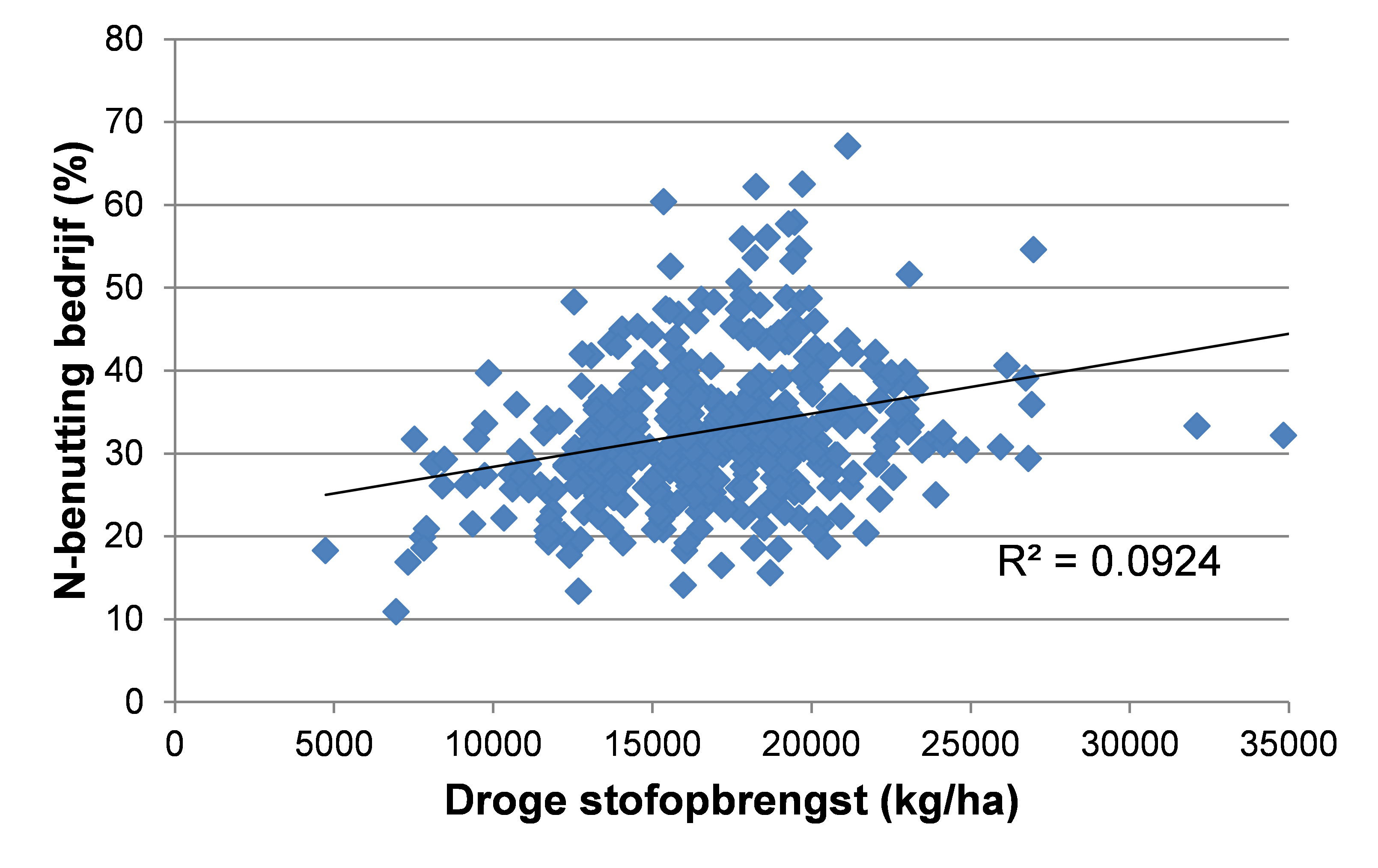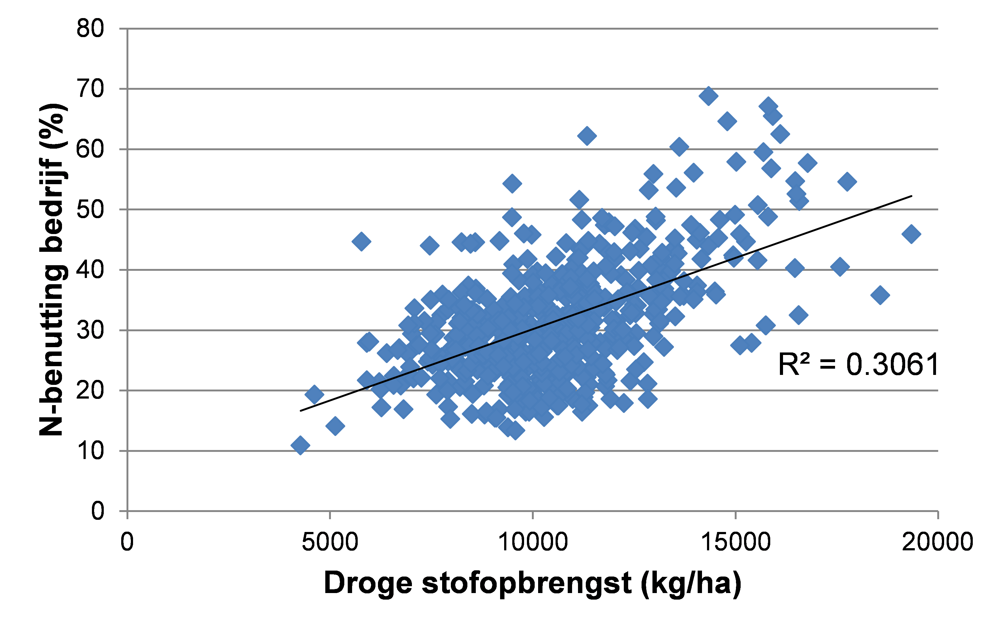 Het verband tussen stikstofbenutting van het bedrijf en droge stofopbrengsten van gras