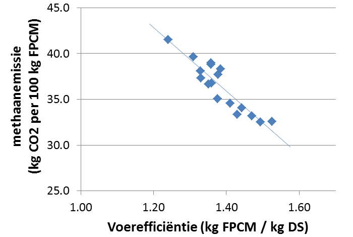 De optimale VE is niet voor ieder bedrijf hetzelfde. Op een extensief bedrijf, met veel eigen ruwvoer zal dit lager zijn dan op een intensief bedrijf waar veel (kracht)voer wordt aangekocht. De geschatte gemiddelde VE bij melkkoeien in Nederland ligt op 1,3 kilogram. En voor de gehele veestapel net iets boven 1 kilogram. In de KringloopWijzer gaat het om een goede VE van de hele veestapel.