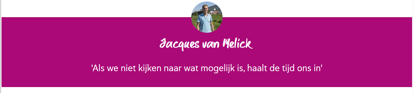 Om diezelfde reden is Jacques actief bezig met innovaties. Kansen die op zijn pad komen, grijpt hij aan. “Als we niet kijken naar wat allemaal mogelijk is, haalt de tijd ons in.”