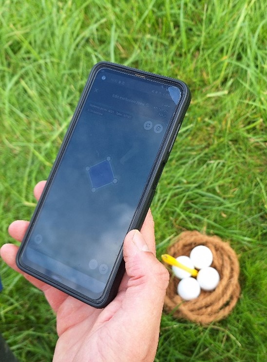 Figuur 2. Met behulp van een app op de telefoon werd in het veld de uit te rasteren zone ingemeten en gemarkeerd