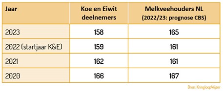 Koe en Eiwit-deelnemers in 2023 gemiddeld op 158 RE