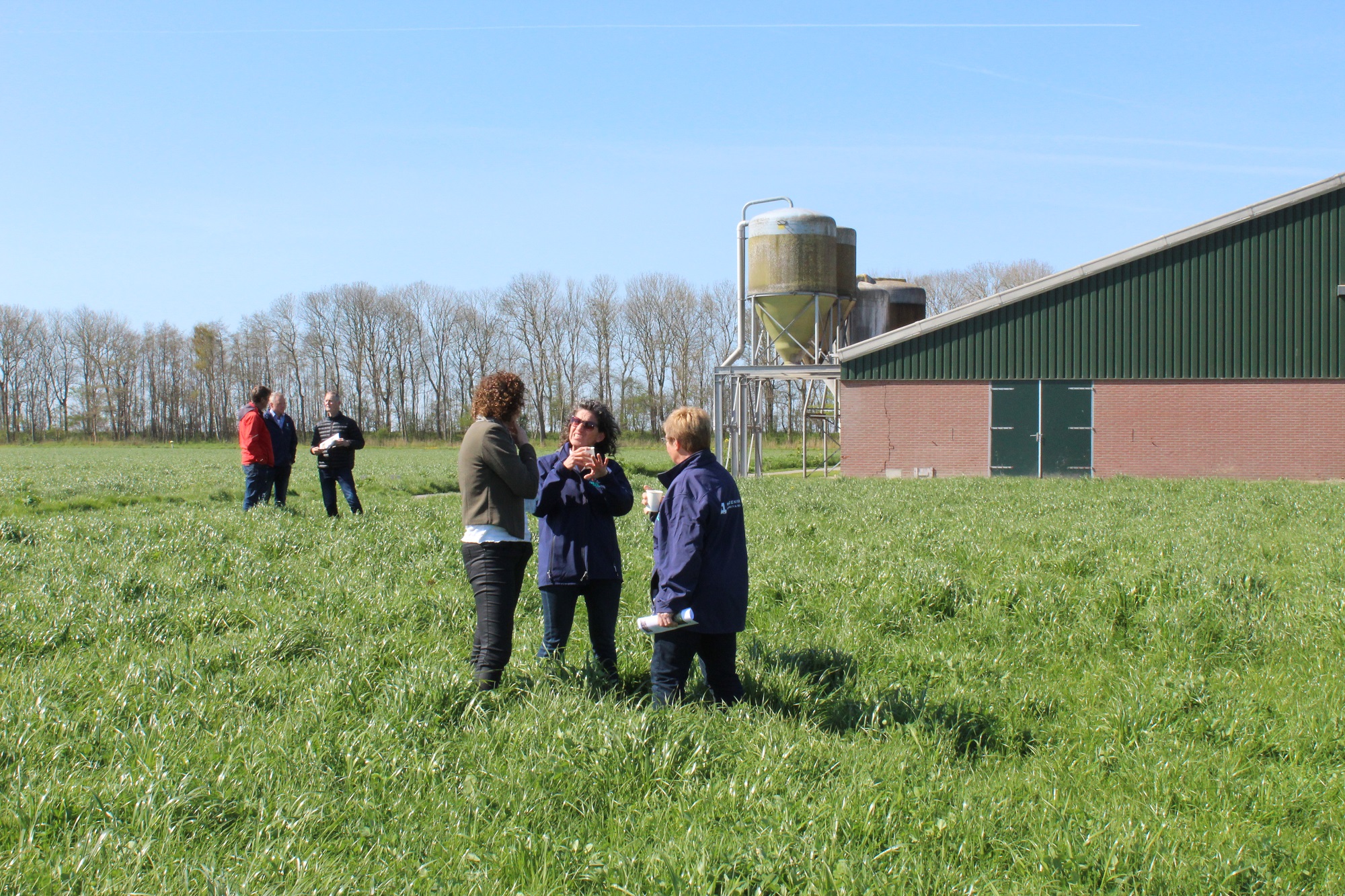 Rijk en Linda Baltus, deelnemers van het eerste uur aan dit project, deelden graag hun ervaringen met hun collega veehouders en onderzoekers. Enthousiast ging Rijk met de groep het kruidenrijke grasland in. Hier teelde een akkerbouwer vorig jaar nog zijn aardappelen. Het kruidenrijk grasperceel staat er goed bij, maar dat heeft volgens Baltus ook een andere reden dat het er dit jaar zo weeldering bijstaat. ‘We hebben namelijk geëxperimenteerd met de bemesting op dit perceel. Op advies heeft hij 180 kg werkzame N op dit perceel gebracht. Daar staat tegenover dat hij minimaal 6,5 ton droge stof wil oogsten met 160 gram ruw eiwit per kg ds van dit perceel. Met deze strategie gaat hij uit van het feit dat hij naar behoefte bemest op basis van wat er groeit. Hij gaat uit van een evenwichtsbemesting. Best een spannend experiment vindt hij het en past het daarom ook slechts toe op een perceel. Heb zodoende wel minder bemesting over voor de rest van het seizoen ‘We hebben hier maken met arme grond met een organische stofgehalte van slechts 2,8 %. Ook hebben we eigenlijk altijd een laag ruw eiwitgehalte in onze eerste sneden’’, merkt hij verder. “Ben benieuwd wat het levert’, voegt hij er nog aan toe.