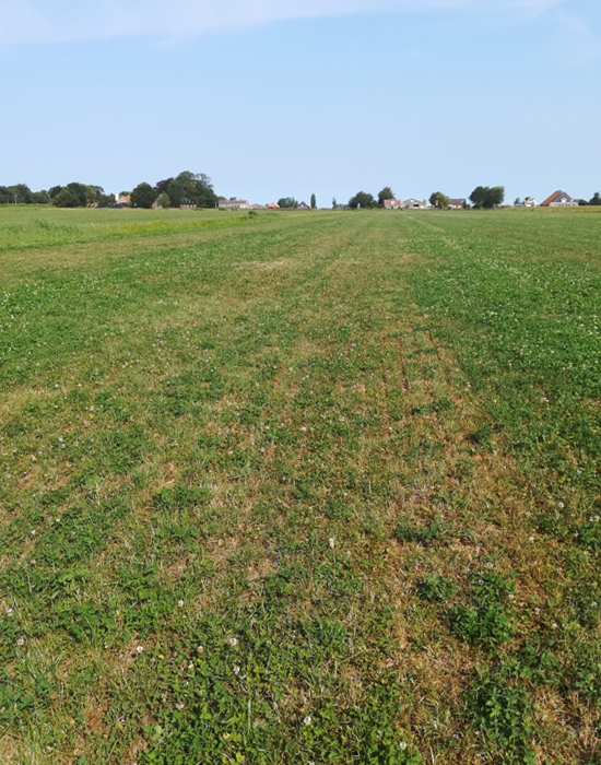 De broers Nanne en Hains Koopman hebben een melkveebedrijf in Oudega (Fr.) met verschillende grondsoorten in een poldersituatie met veel oppervlaktewater en meer risico op vernatting dan op droogte. Een aantal percelen heeft diepe drainage. Om droogte te verminderen zijn de drainopeningen bij wijze van experiment onder water gezet door het slootpeil te verhogen. De drains gingen hierdoor water in de bodem aanvoeren (infiltreren). Dit had een zichtbaar effect op de productiviteit van het gras-klavermengsel. Boven de drains was de gras-klaver aanmerkelijk groener en productiever. De capillaire opstijging van vocht uit de ondergrond werd hierdoor blijkbaar behoorlijk bevorderd, met minder droogteverschijnselen als gevolg. Ook de relatief grotere worteldiepte van witte klaver speelt hierbij waarschijnlijk een rol. Om optimaal van drainage te profiteren zouden de drains eigenlijk ondieper moeten liggen en dichter bij elkaar. Mogelijk dat dit voor de toekomst een overweging is.