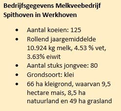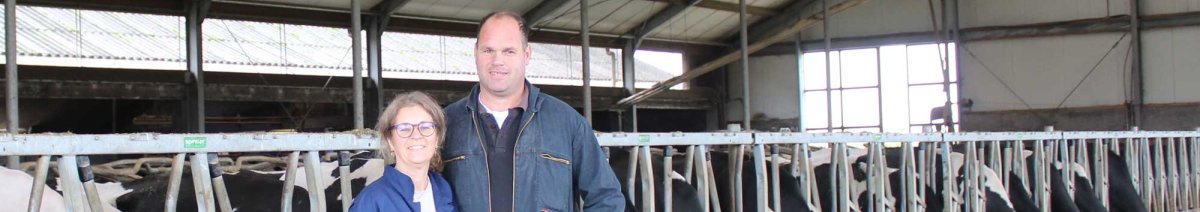 Freek Spithoven (44) en zijn vrouw Denise Zumbrink (45) zijn enthousiaste deelnemers aan de praktijkpilot Koe en Eiwit. Op hun melkveebedrijf met 125 melkkoeien draait alles om “rust, reinheid en regelmaat.” Al jaren voeren ze hun koeien een vast rantsoen met ongeveer 164 gram ruw eiwit (RE) per kilogram droge stof. “Dit jaar zitten we rond 160 RE, zonder dat dit ten koste gaat van de melkproductie. Een stabiele productie en diergezondheid zijn onze belangrijkste voorwaarden,” stelt Freek.