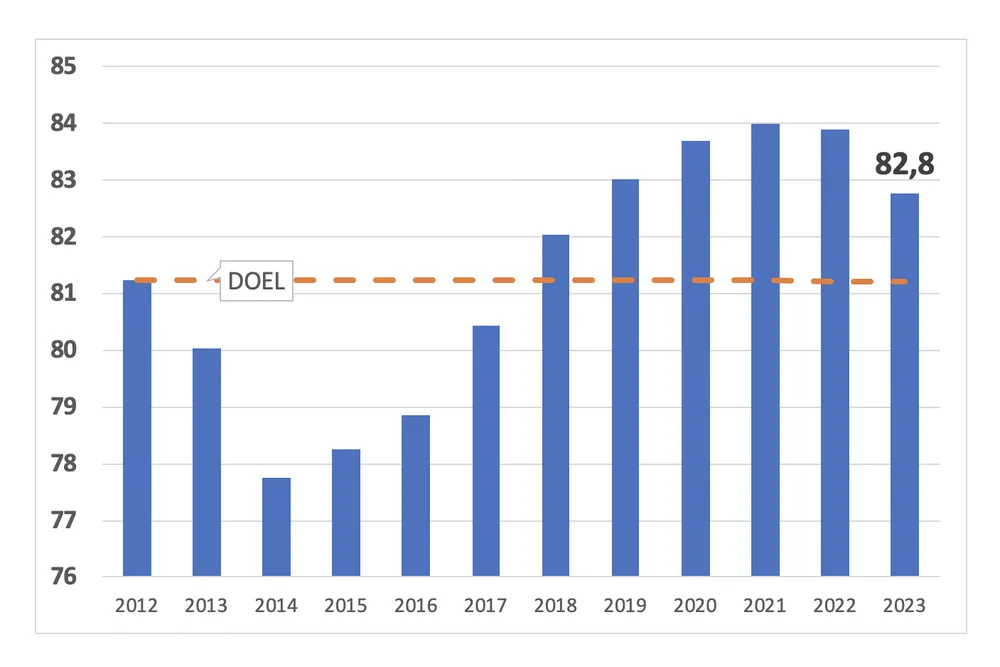 Het aandeel melkveebedrijven waar de koeien buiten lopen is in het afgelopen weideseizoen licht afgenomen en kwam uit op 82,8%. Te midden van de diverse (duurzaamheids)opgaven waar de melkveehouderij voor staat, heeft weidegang in 2023 vermoedelijk iets minder prioriteit gekregen.