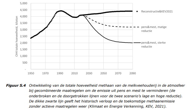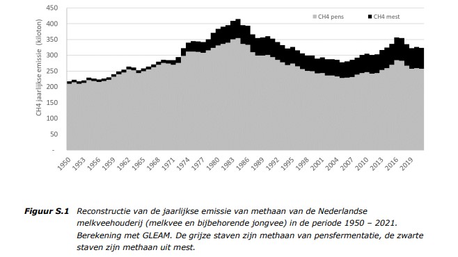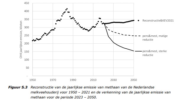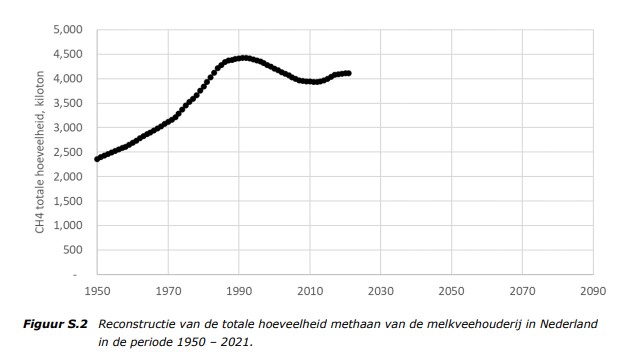 Figuur S.1 laat zien dat de jaarlijkse methaanemissie uit de melkveehouderij een vrij continu stijgende