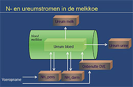 De globale relatie tussen melkureum en de hoeveelheid gemakkelijk vervluchtigbare stikstof die een koe uitscheidt is bekend.